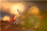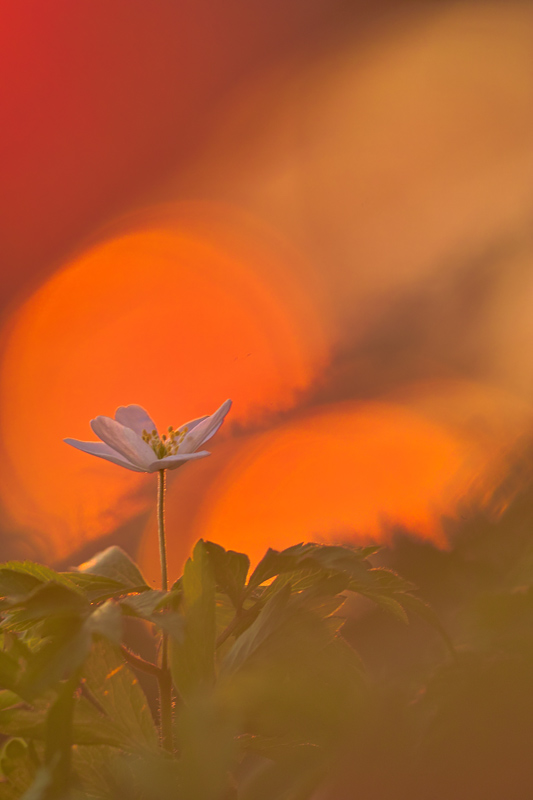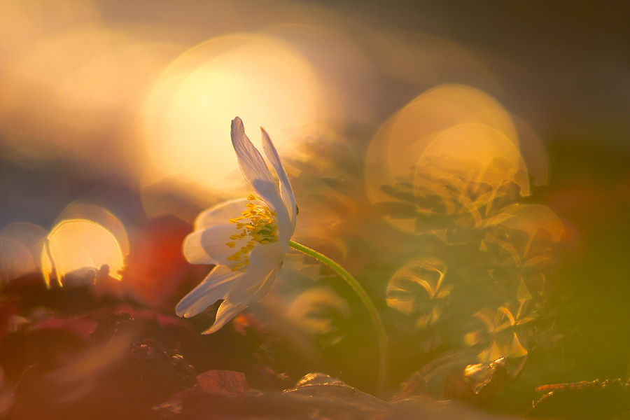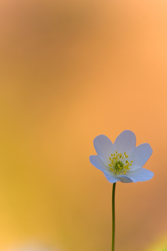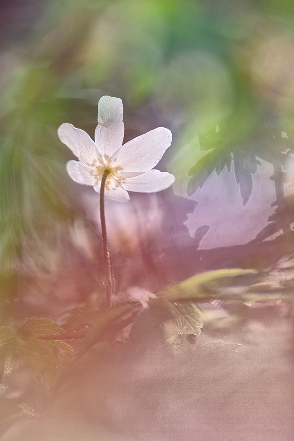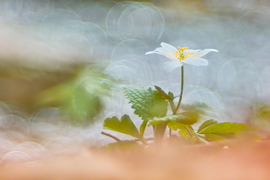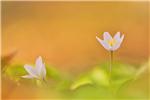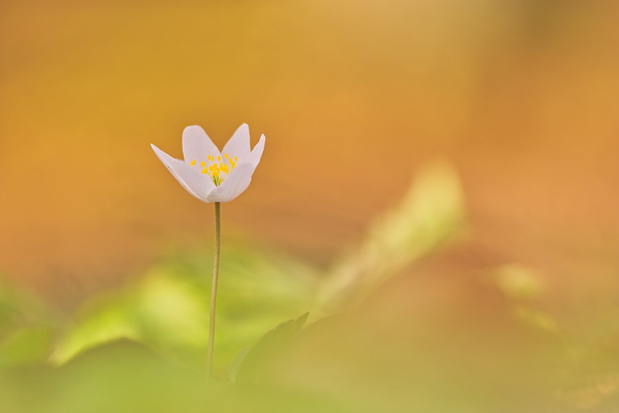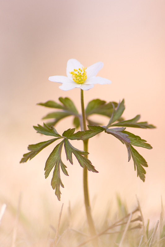Buschwindröschen (Anemone nemorosa) mit Pilz im Herbstwald