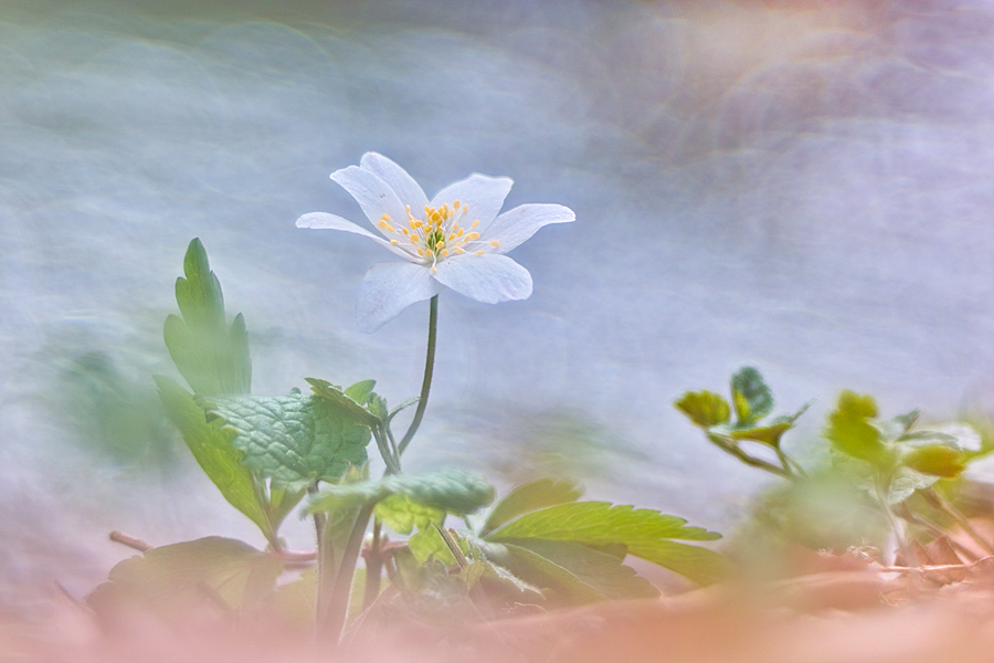 Buschwindröschen (Anemone nemorosa) am Wasser.