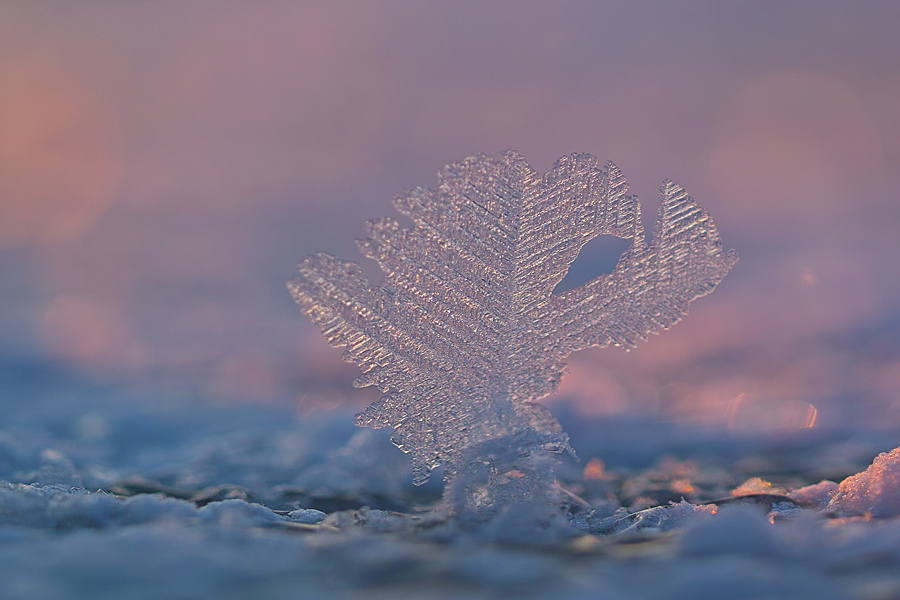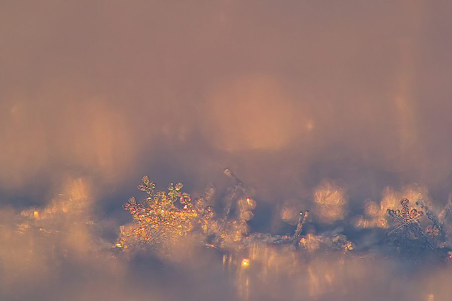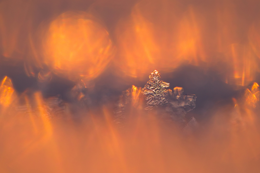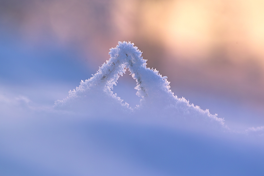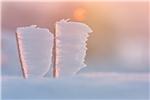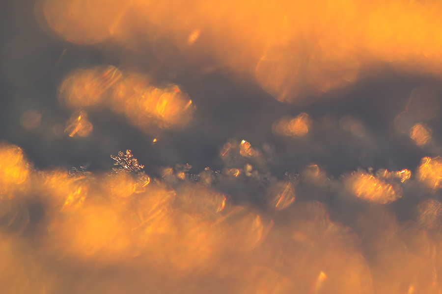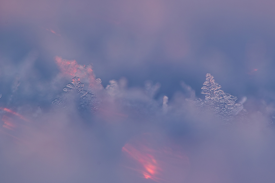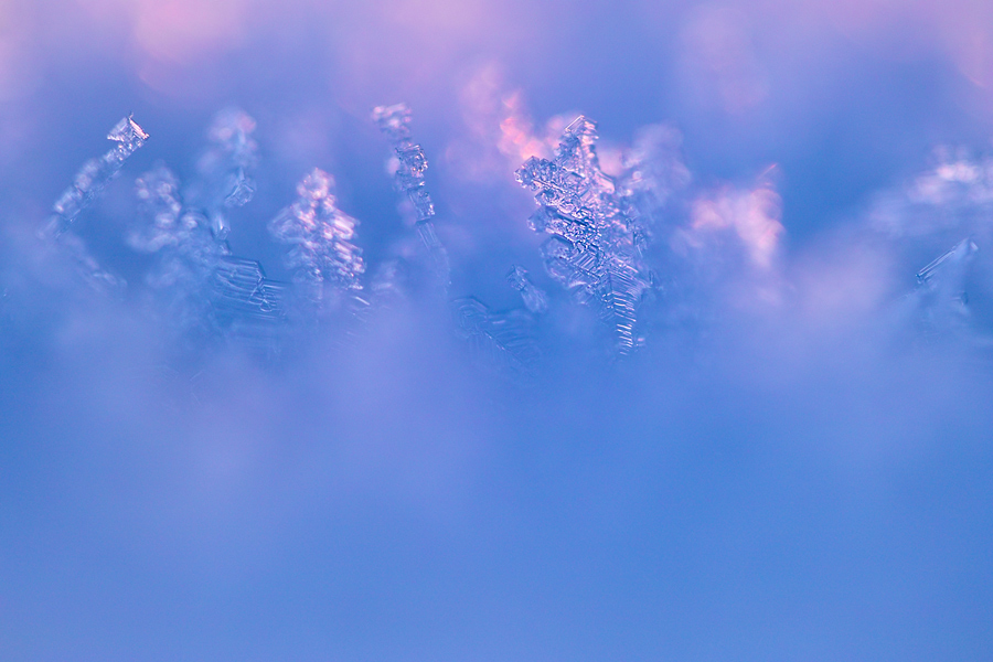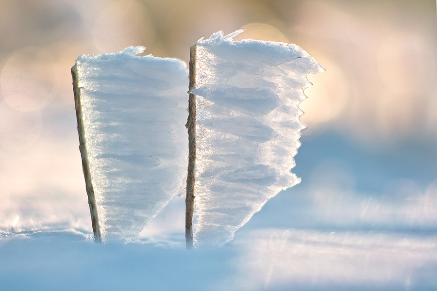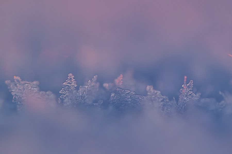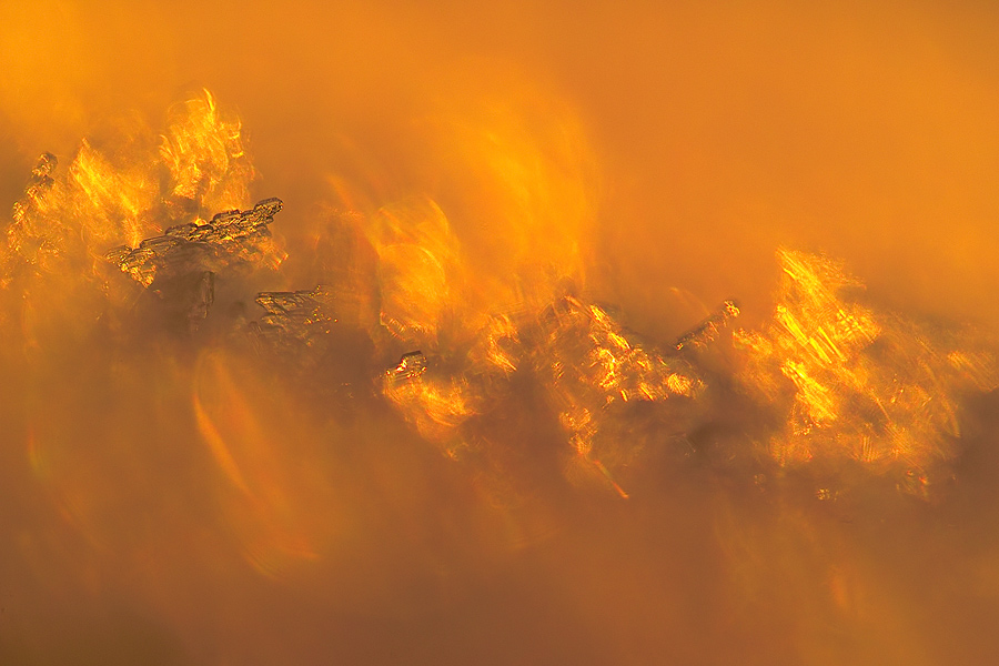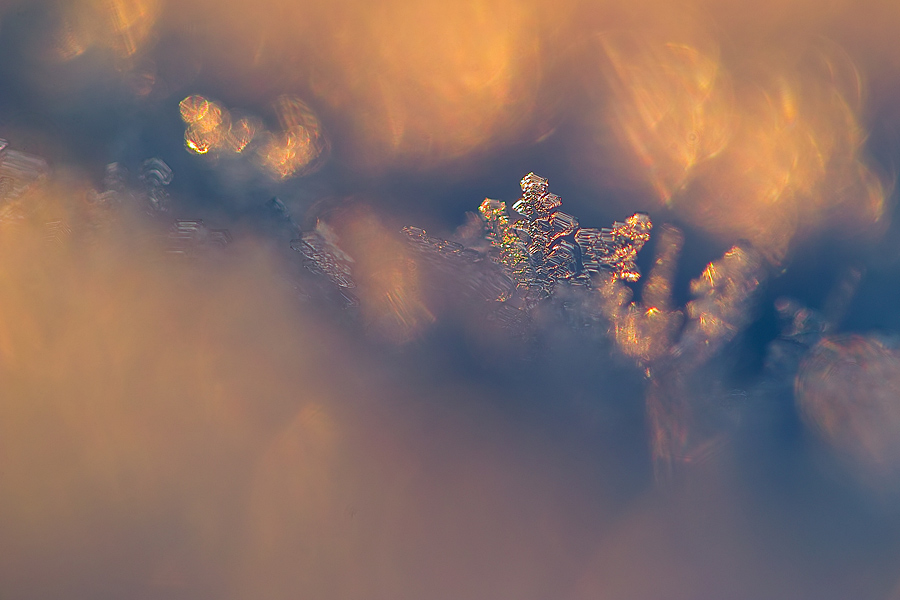 Oberflächenreif | Reifkristalle im Sonnenuntergangslicht