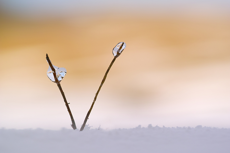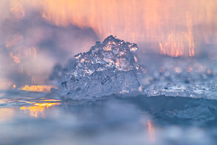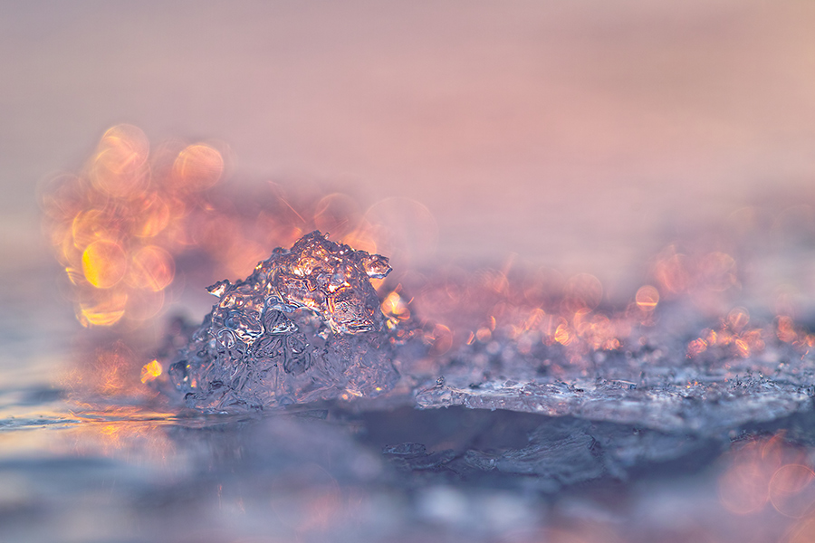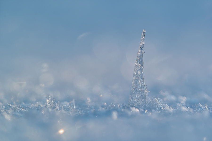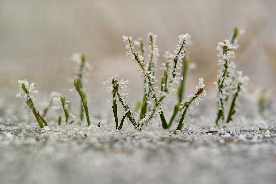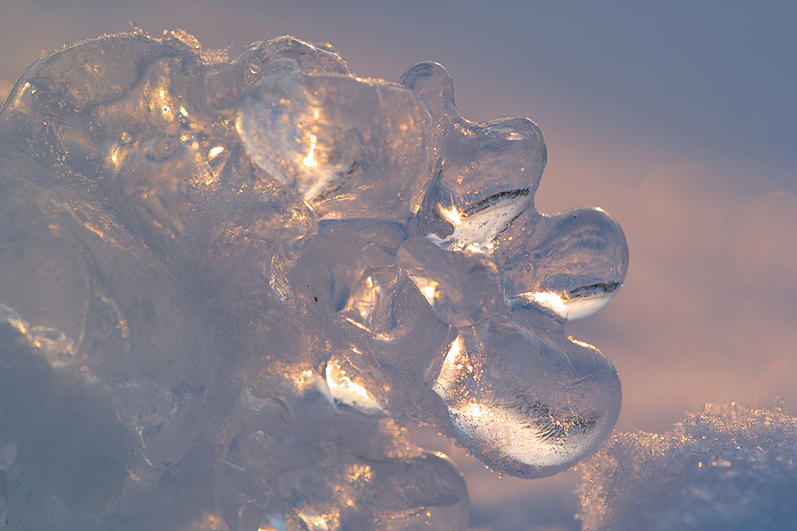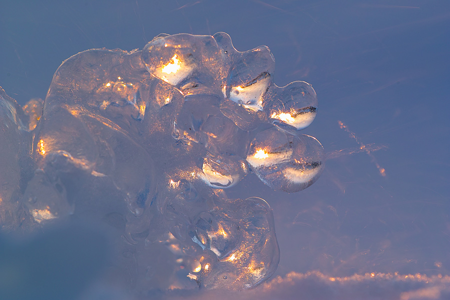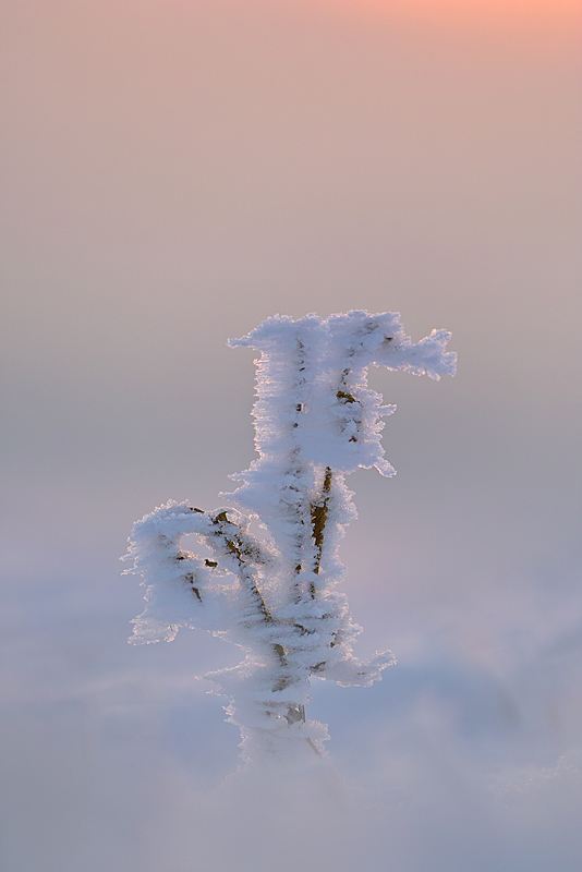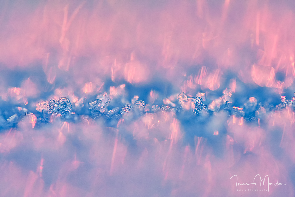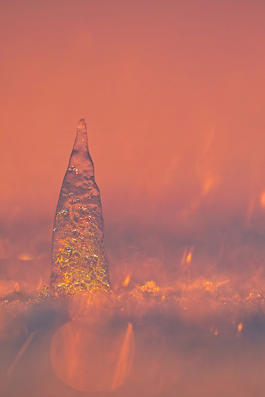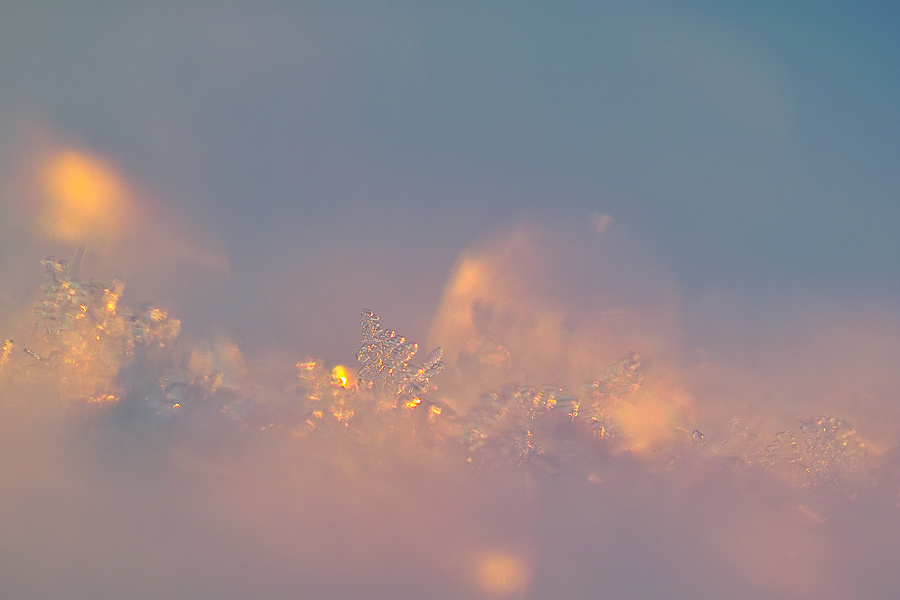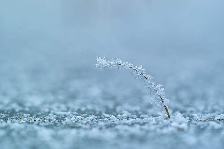 Oberflächenreif | Reifkristalle im Sonnenuntergangslicht