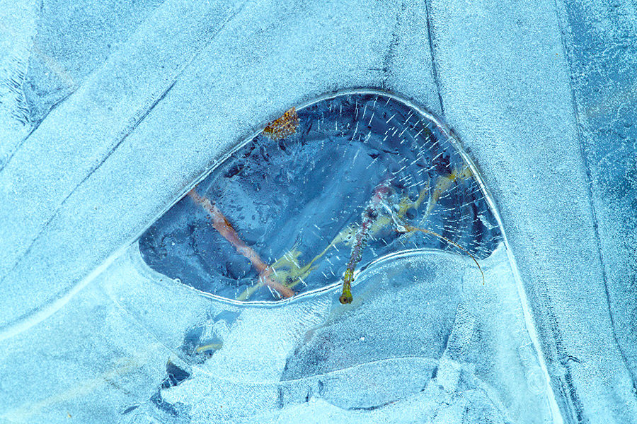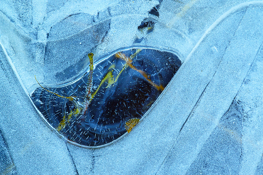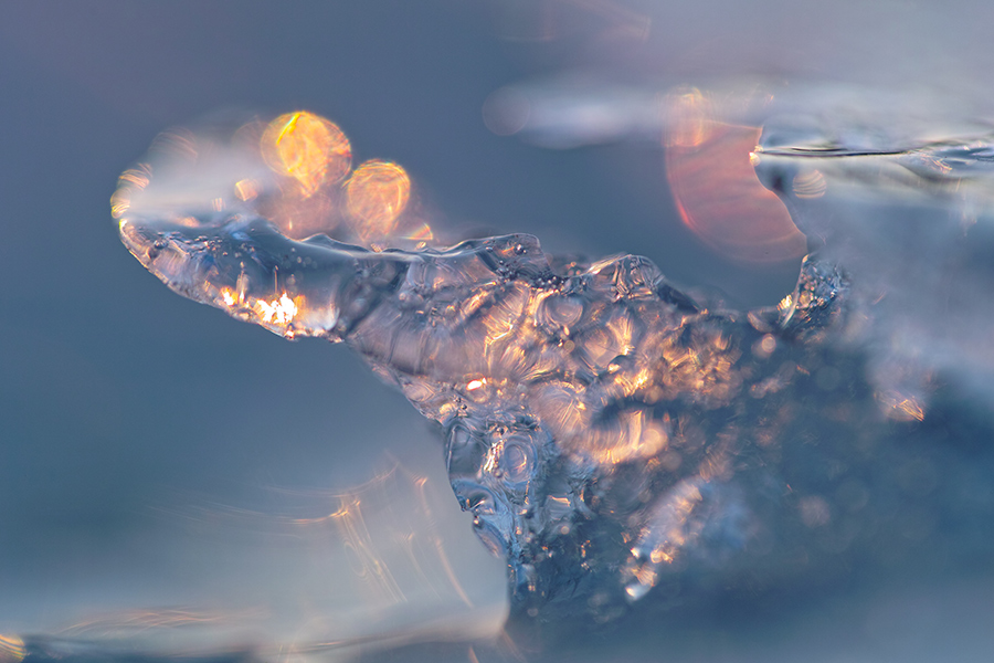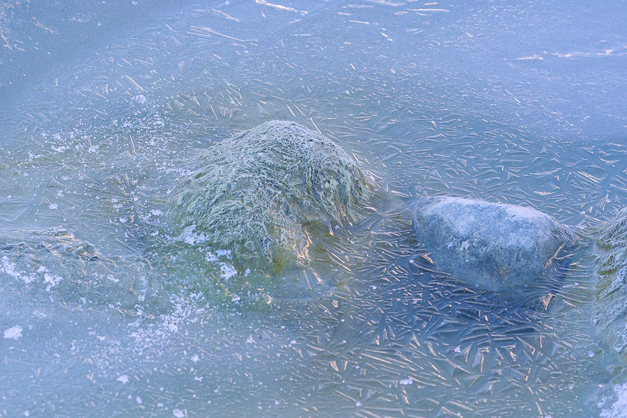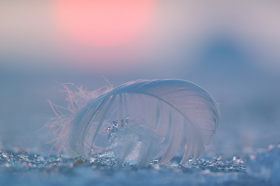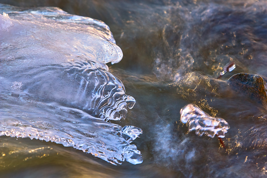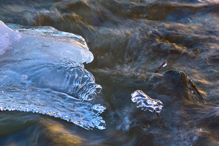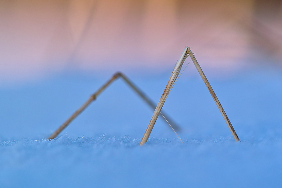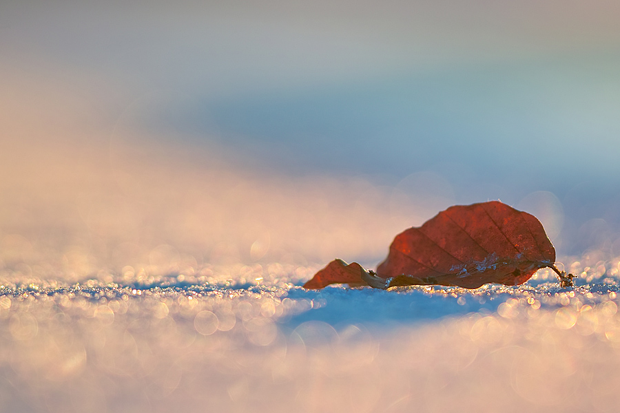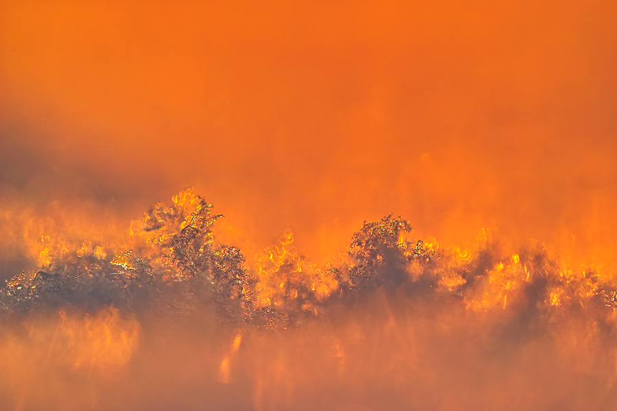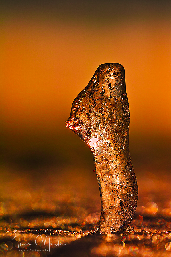 Oberflächenreif | Reifkristalle im Sonnenuntergangslicht